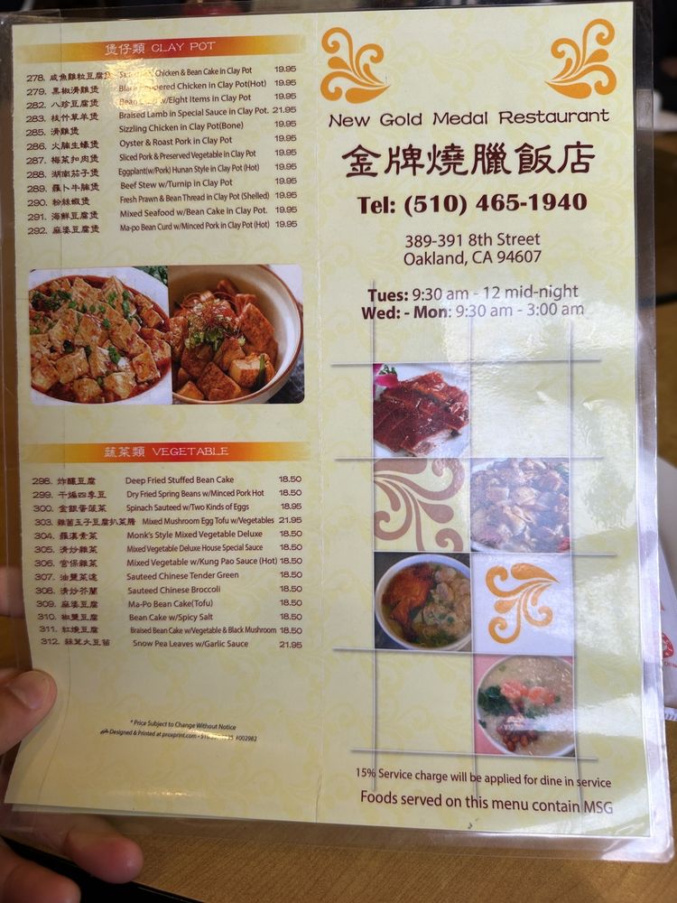 Introducing New Gold Medal, a Chinese restaurant located at 389 8th St Oakland, CA 94607, this establishment boasts a wide range of offerings. From their famous salt and pepper spare ribs to their steamed sole, each dish is a testament to authentic Chinese cuisine. Customers rave about the roast duck, crispy pork, and various noodle dishes that are sure to satisfy any craving. The ambiance is described as casual and family-friendly, making it a great spot for groups and kids. With excellent service and a welcoming atmosphere, New Gold Medal is a hidden gem in the East Bay. Don't miss out on their vegan and vegetarian options, as well as their happy hour specials. Experience the flavors of traditional Chinese dishes at New Gold Medal and indulge in a culinary journey unlike any other.